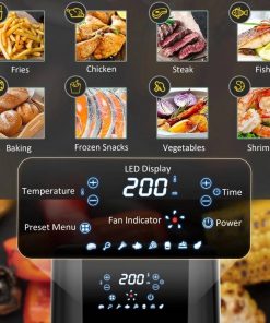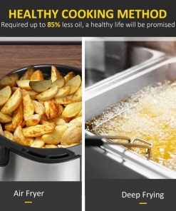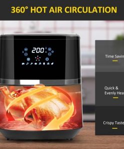 Healthy cooking is a must nowadays! This Silver/Black BPA Free Multi-Function 4 in 1 Oven Air Fryer allows you to enjoy the same delicious crispy fried foods with less fat, while a 360° hot air circulation system in this air fryer ensures evenly and quick heating. This air fryer oven combines air frying, baking, broiling, and a roast function in a unit. The eight preset menus have steak, wings, shrimp, fish, snacks, fries, bake, and vegetables, especially suited for beginners. Our cold-rolled steel basket is non-stick coated, PFOA free, and BPA free, durable and reliable for daily use. The overheat protection on this compact air fryer turns it off if the internal temperature gets too hot. You can easily control the temperature of the air frier cooker from 170-400 F and time from 0 to 60 minutes with the built-in digital touchscreen for cooking anything you want. This 4.7QT capacity air fryer can effortlessly cook for up to 6 people . With its generous size, whip up a feast with ease. Great for family gatherings or entertaining friends.