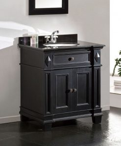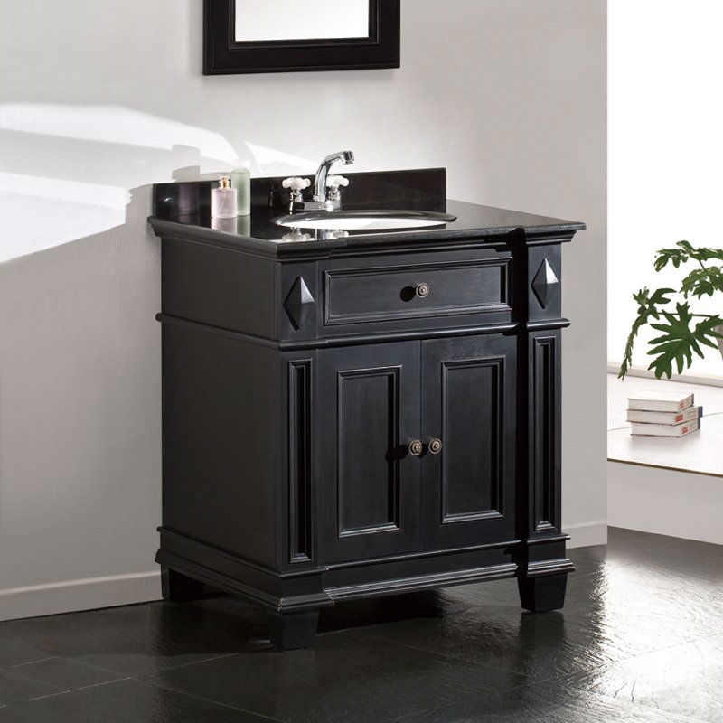 Single Sink Bathroom Vanity with Cabinet & Black Granite Countertop / Backsplash