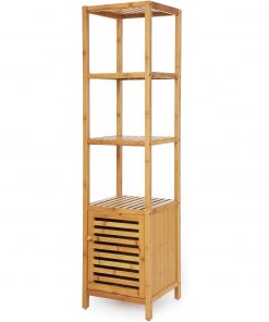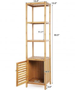 - 2 IN 1 DESIGN: Perfect combination of shelf and storage cabinet; 4 shelves provide ample storage space in bathroom for towels, toiletries, etc., the roomy cabinet with slatted door can store infrequently used items and keep them from dirt