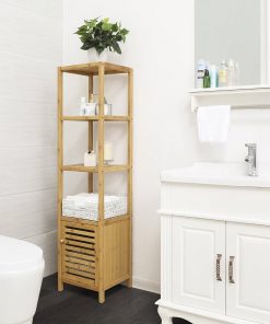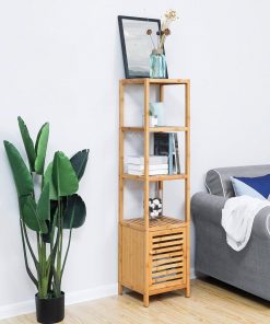 This Slim 3-Shelf Bamboo Wood Bookcase Shelving Unit with Bottom Storage Cabinet is the perfect combination of functionality and style to create an ideal organizer for your bathroom, bedroom and living room. It comes with 4 shelves and a roomy cabinet, providing multiple options to keep towels, toiletries and decorative items or display flower pots in style. Made of eco-friendly bamboo, this shelving unit is sturdy, durable and easy to clean. Better yet, the natural color and slim body match well with any furniture in your home. Get this sleek and practical storage tower to update your home to a natural and organized look!