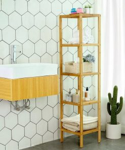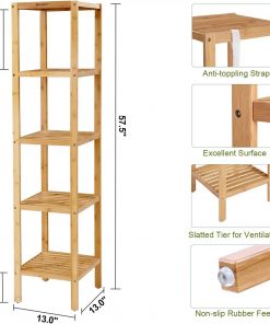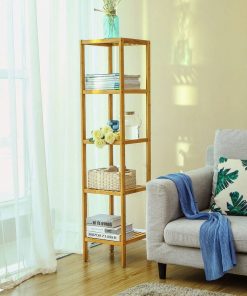The Slim 4-Shelf Natural Bamboo Wooden Shelving Unit Storage Rack Bookcase features sturdy bamboo and refined craft, creating additional space for your home. Considerable design makes it a better choice to your bathroom, living room, kitchen, balcony or any other space to display and store items in style. It can be used as a storage rack for toiletries, towels, sundries, decorative things, knick knacks, shoes, books, plants, spice and small appliances. You can remove a layer to meet your special storage need. Easy to care and clean. The nice bamboo will well match with your furniture in your home.