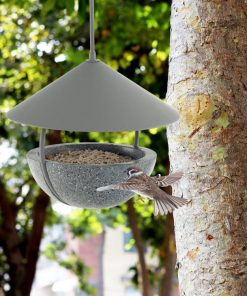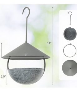 With a deep round water bowl, this Small Hanging Bird Feeder with Metal Cone Rain Protector Top invites birds or other wild animals to feed or drink from all sides. Meanwhile, it is suitable for your feathered friends to enjoy a bath. The feed bowl of our bird feeder is made of high-quality resin, which can withstand cold temperatures without cracking or breaking. Besides, the roof is made of sprayed metal, which is rust-resistant and weather-resistant, suitable for all seasons. The metal hanging bird feeder features a 370 ml capacity, and it is designed with no lid, allowing you to conveniently fill foods inside, such as seed, corn, grain, nut, peanut, millet, etc. Equipped with a metal hanging hook, the outdoor bird feeder can be hung on a tree or wall to attract beautiful birds to drink and feed. Therefore, you can enjoy the wonderful sound of birds and nature in your garden, backyard, front porch, etc. The hanging bird feeder is easy to assemble without any tools. And the resin base can be disassembled quickly. Then you can clean it with clean water, wipe it with a cloth and keep it dry.