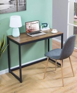 - Small Home Office Modern Laptop Computer Desk Table Metal Frame Brown Wood Top