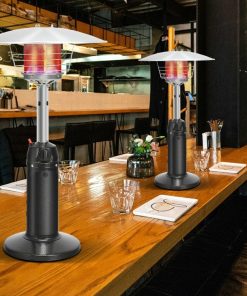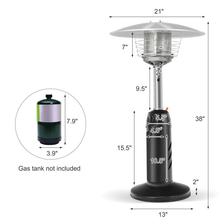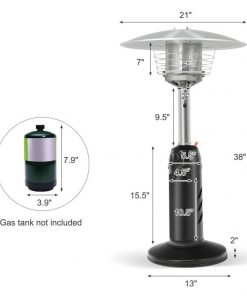 This Small Portable 11,000 BTU LP Gas Tabletop Propane Patio Outdoor Heater will always keep warm even during the coldest winters. By simply pressing the ignition switch to ignite and turning the control knob you’ll get heat instantly. Made from rust-resistant steel and aluminum. The wire guard can endure high temperature and ensure higher safety. The weighted base makes the heater stand more steadily without tipping over. This portable patio propane heater is truly a perfect companion for you in the coming winter.