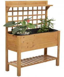 Let natural beauty lead the way in your garden this season with this FarmHome Solid Fir Wood Trellis Elevated Garden Raised Planter Bed with Wheels . The three-tier design of our planter box ensures flowers, vegetables, and herbs have plenty of room to grow and flourish. The middle tier is dedicated solely to growing plants, with a wide and deep trough for dirt and seeds. Meanwhile, the top and bottom tiers are dedicated to tool and accessory storage. The decorative back grid of the garden box is perfect for climbing vines, or hanging lights and other decorations. Finally, with wheels on each leg, the plant bed is easy to move to anywhere you need it.