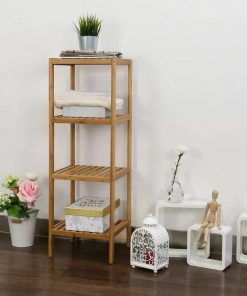 • The bamboo shelf is suitable to be placed in the hall, living room, bedroom, balcony, etc. The 4-tier design works great for placing toiletries, towels, sundries, shoes, books, plants, spice, and other small appliances.