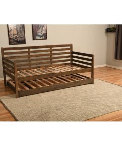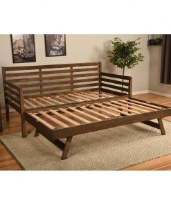 - Solid Wood Daybed Frame with Twin Pop-Up Trundle Bed in Walnut Finish