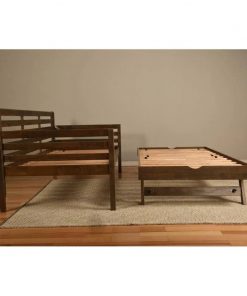 The Solid Wood Daybed Frame with Twin Pop-Up Trundle Bed in Walnut Finish boasts clean lines and attractive angles. It’s available in 3 different finishes that will blend in with any color scheme in your home. The Pop up can be stored under the bed and is easily wheeled out when needed. The Pop up converts this daybed to King-size or can be used as an additional twin bed. Whether you’re using it everyday, or just on occasion, this daybed will hold up to your lifestyle.