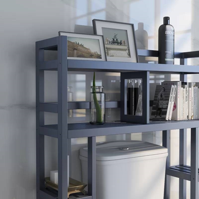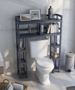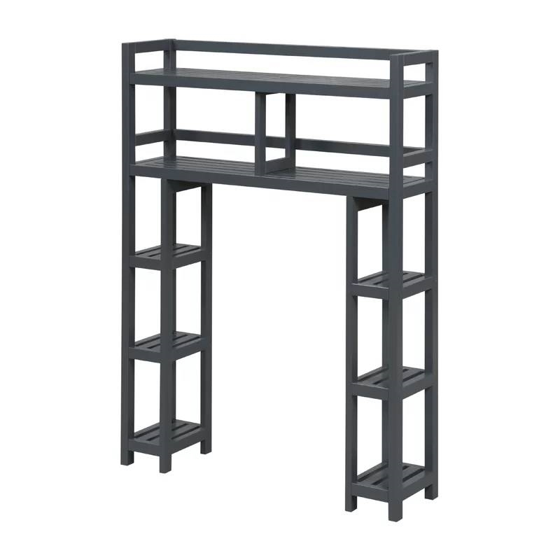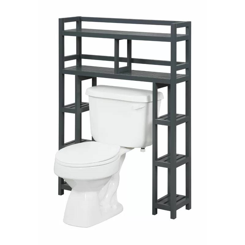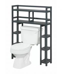 - Solid Wood Over the Toilet Bathroom Storage Unit in Black Graphite Finish