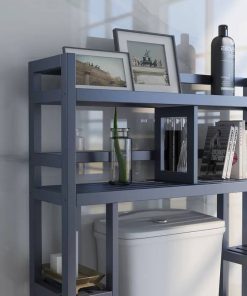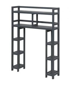This Solid Wood Over the Toilet Bathroom Storage Unit in Black Graphite Finish is the ideal choice for any bathroom. Crafted from 100% Solid Wood (Birch), this modern design will bring beauty and functionality to your décor. With sleek lines and open access storage and display, you can make unusable space usable. A slim profile means it can fit in tight spaces and will not overwhelm your room. This innovative design is not only attractive, but also ensures guests can easily find washcloths, tissues, and bath rolls – all within an arm’s reach. Save precious counter/sink space while adding an element of solid wood craftsmanship. Our high quality Sherwin-Williams color finishes are snag free and water-resistant. Solid Wooden furniture is durable, sturdy and timeless.
