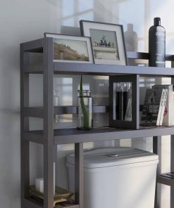 This Solid Wood Over the Toilet Bathroom Storage Unit in Dark Brown Finish is the ideal choice for any bathroom. Crafted from 100% Solid Wood (Birch), this modern design will bring beauty and functionality to your décor. With sleek lines and open access storage and display, you can make unusable space usable. A slim profile means it can fit in tight spaces and will not overwhelm your room. This innovative design is not only attractive, but also ensures guests can easily find washcloths, tissues, and bath rolls – all within an arm’s reach. Save precious counter/sink space while adding an element of solid wood craftsmanship. Our high quality Sherwin-Williams color finishes are snag free and water-resistant. Solid Wooden furniture is durable, sturdy and timeless.
