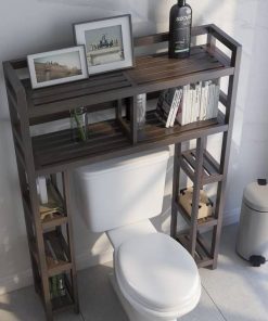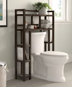 - Solid Wood Over the Toilet Bathroom Storage Unit in Dark Brown Finish