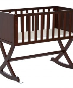 This Cherry Finish Wood Rocking Baby Glider Cradle with Crib Mattress creates a cozy nest-like surrounding for your newborn. This cradle offers a simple and modern design by incorporating straight lines, a solid side panel with a soft mattress pad, and an x-cross base, which allows parents to rock gently their babies to sleep with sophisticated iron decors and pops of geometric prints that inspire a plush, peaceful, all-night comfort.