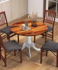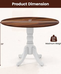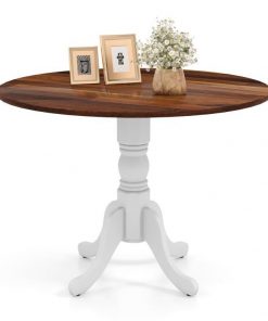 - Solid Wood Round 40-inch Kitchen Dining Table with White Legs and Brown Top