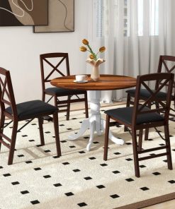 Crafted with natural rubber wood, the Solid Wood Round 40-inch Kitchen Dining Table with White Legs and Brown Top is solid, not easy to crack and deformation-resistant for prolonged lifespan. Moreover, been through exquisite workmanship, it is smooth and burr-free. The brown wood finish and elegant curved trestle legs make this dining table a stunning addition to your home. Hence, the dining table can easily blend with various decor themes to improve the style of your living room, kitchen, and dining room. The rustic dining table comes with stable splayed legs, which ensures excellent stability. Additionally, each leg is equipped with adjustable feet pads, thus the dining room table will not wobble on uneven grounds. This dining table can accommodate up to 4 people, making it the perfect choice for small family gatherings. In addition, the thoughtful round corners are designed to avoid scratching or bumping. Equipped with detailed instruction and numbered parts, the assembly of the dining table will not trouble you. With a healthy paint finish, the dining table can be easily cleaned with a wet cloth.