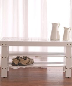 In the entryway or bedroom, this Solid Wood Shoe Rack Entryway Storage Bench in White is a place to pause and put your shoes on. It can add more storage to your home without sacrificing space. Durable solid wood frame, display and store up to 10 pairs of shoes. If you wish, you can sit on the top for a spell or use it as storage space too.