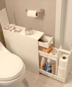 Looking to free up some room in your medicine cabinet without losing all your floor space? Look no further than this Space Saving Bathroom Floor Cabinet in White Wood Finish to serve your bathroom storage needs. Constructed from hardwood solids and engineered wood, this cabinet will remain sturdy for years to come. Its fresh white color nicely complements most decors styles and designs. It has a small footprint so it’s not overbearing as an addition, and with a top drawer, lower pullout shelf, and hidden top compartment, this cabinet holds up to 12 rolls of toilet paper as well as your cleaning products and personal accessories. Comes fully assembled.