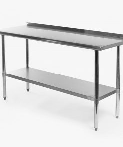 This Stainless Steel 60 x 24 inch Heavy Duty NSF Certified Work Bench Prep Table with Backsplash is constructed from 18-gauge #430 stainless steel, and is the perfect work surface for use in a kitchen, bar, restaurant, laundry, school, hospital, or any other commercial setting. It is NSF certified to meet strict standards for public health protection and built for high-volume use to last a lifetime. This table features an extra heavy-duty top with a 1-1/4″ tall backsplash, an adjustable-height galvanized under-shelf, and galvanized legs with adjustable non-marring feet that eliminate table wobble on uneven floors. The edges on the front and back of the tabletop are rounded for working comfort. Fast and easy assembly.