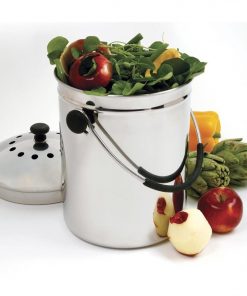 This Stainless Steel Kitchen Compost Keeper Bin with Charcoal Filter allows you to conveniently store food scraps in this odor eliminating container before transferring food to an outside composter. Attractive, high shine, polished finish. Sturdy stainless steel and santoprene comfort grip handle and knob. Includes a dual odor preventing filter set in the tight fitting lid. The filter set should keep your compost keeper odor free for up to 6 months. Use replacement filter 94F.