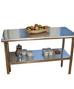 High quality non-magnetic stainless steel All Stainless Steel Construction 18 Gauge Stainless Steel NSF, food-safe certified Fully adjustable stainless steel shelf Rounded corners and edges for safety Weight capacity: 150lbs. per shelf Can be used with or without the bottom shelf One year warranty Finish: Silver Top Material: Stainless Steel Frame Material: Stainless Steel Shelves Included: Yes Weight Capacity: 150lbs. Country of Manufacture: China Dimensions:35-inch H x 48-inch W x 24-inch D Weight: 49lbs.