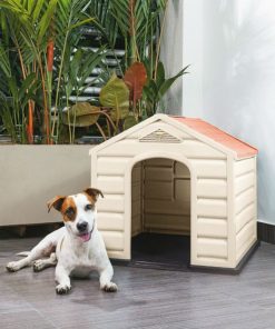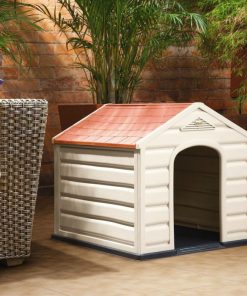 Give your cutest family member their very own digs with the Sturdy Outdoor Waterproof Small Breed Dog House . Built with strong weather-resistant resin material and a UV-protecting beige finish, this dog house is ideal for small dog breeds looking for a comfy place to relax away from the elements. With an elevated floor and waterproof interior, your dog will love the safety and warmth of this home for hounds.