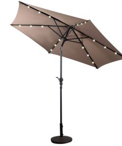 This Tan 9-Ft Patio Umbrella with Steel Pole Crank Tilt and Solar LED Lights is an ideal choice to decorate the areas around your house to make the surrounding environment more attractive. This is our 9 ft LED solar umbrella, sun tent, rain shelter, and more all in one, the parasol gives you instant portable protection from the elements regardless of your activity. It blocks the sun’s rays throughout the day, and lights up the night with its pre-installed solar-powered LEDs. Are you looking for such a decent umbrella? Don’t hesitate to take it home.