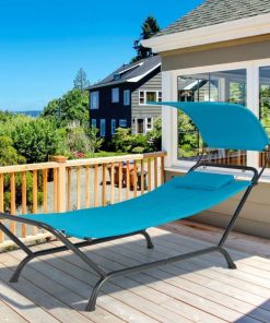 This Hammock Style Chaise Lounge Chair with Canopy Storage Bag comes with a curved canopy to protect you from the hot sun while you relax outdoors. The waterproof, sun-proof, and wear-resistant polyester fabric supports long-lasting outdoor use. Besides, the side storage pocket is convenient to store your tablet, phone, magazines, or sunglasses and keep them at arm’s reach. Equipped with a thick padded cushion and soft pillow, this hanging lounge chair offers a cozy space to let you enjoy your outdoor leisure time. This freestanding hammock with stand and a removable canopy is suitable for various places, like the backyard, poolside, patio, garden, porch, deck, balcony, or indoor space. You sit or lie in it to completely relax your body and mind in the cool breeze.