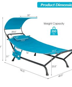 Teal Blue Outdoor Hammock Chaise Lounge Chair Cot with Canopy and Storage Bag