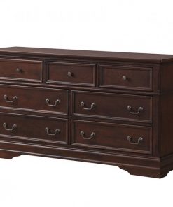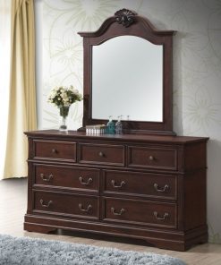 Feast your eyes on this magnificent Traditional 7 Drawer Dark Brown Dresser with Mirror Storage Set. This dresser and mirror set is crafted from solid MDF construction and has a smooth surface. Come with 7 pull out drawers provide ample room for clothing and accessories. Drawers run smoothly on metal glides. Large mirror makes it easy to decide what to wear.