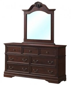 Feast your eyes on this magnificent Traditional 7 Drawer Dark Brown Dresser with Mirror Storage Set. This dresser and mirror set is crafted from solid MDF construction and has a smooth surface. Come with 7 pull out drawers provide ample room for clothing and accessories. Drawers run smoothly on metal glides. Large mirror makes it easy to decide what to wear.