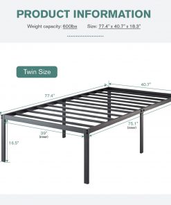 This Twin 18-inch High Metal Platform Bed Frame with Under-bed Storage Space would be a great addition to your home. The bed frame increases the thickness of the steel tube. Method of welding platform structure and using fix screw is adopted in the design, 13 strong Metal slats and 9 independent support legs can withstand up to 600 lbs capacity.