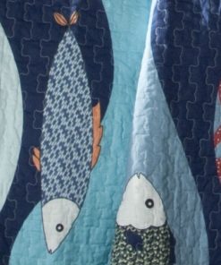 Twin Blue Serenity Sea Fish Coral Coverlet Quilt Bedspread Set