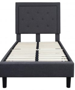 - Twin Dark Gray Fabric Upholstered Platform Bed with Button Tufted Headboard