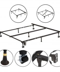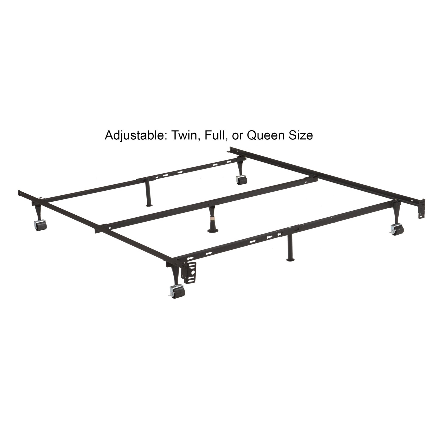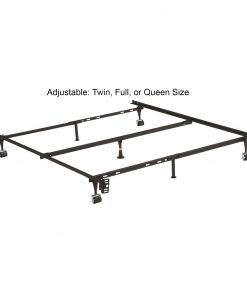 Set a simplistic foundation for your restful retreat with this understated Twin, Full, Queen Sturdy Black Metal Adjustable Bed Frame w/Headboard Brackets. An essential for any master suite, bedroom, or guest room. Crafted from 1 1/4 inch steel with a black finish, this sturdy frame offers an expandable design that can be adjusted to fit any box spring/ mattress sizes from twin, full, or queen. Comes with a center support rail, 4 wheels, and 3 support legs. make it a durable support system to hold up any box spring and mattress. All tools are included and assembly shouldn’t take more than 10 minutes.