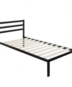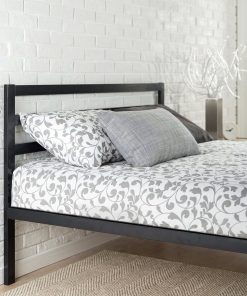 • Twin Modern Modern Metal Platform Bed Frame with Headboard and Wood Slats
