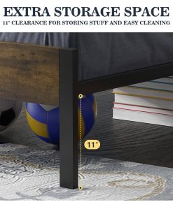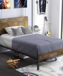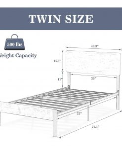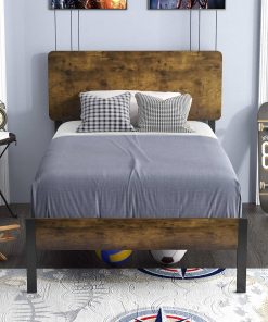 - Twin Modern Metal Platform Bed Frame with Rustic Wood Headboard and Footboard