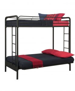 Bringing style and a functional sleeping space into your home is easy with this Twin over Full Futon Bunk Bed Sleeper Sofa in Black Metal. It features a top twin size and lower full size futon bed which are great for siblings, sleep-overs, and story time.
