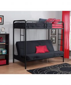 - Designed to maximize space – bottom futon quickly converts to full size sleeper