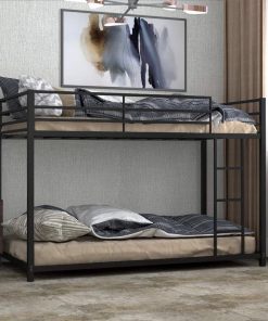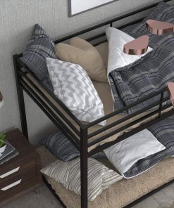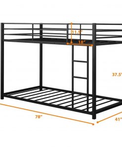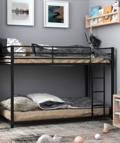 - Twin over Twin Low Profile Modern Bunk Bed Frame in Black Metal Finish