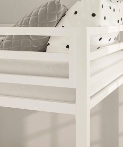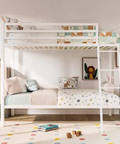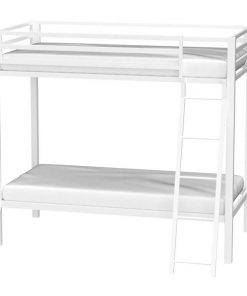 - Twin over Twin Modern Metal Bunk Bed Frame in White with Ladder