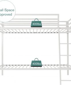 This Twin over Twin Modern Metal Bunk Bed Frame in White with Ladder would be a great addition to your home. Twin bunk beds with square metal tube & 20 slats per layer have stronger load-bearing capacity than round one. 14 Enhanced upper-level guardrail and round-tube stairs ensures safety, protects growth. Weight limit:400lbs.