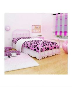 • Twin Pink Metal Platform Bed with Headboard and Footboard