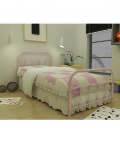 This Twin Pink Metal Platform Bed with Headboard and Footboard is a classic antique designed bed made of cast iron and steel. Virtually indestructible. Easy clean. Uses standard twin mattress.