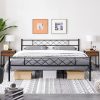 - The height of the bed frame reaches 16 inches, no additional box spring is required. Metal slats are designed to support and extend the life of your latex, memory foam or mattress.