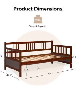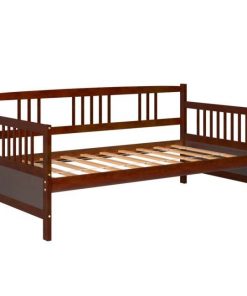 - Twin size 2-in-1 Wood Daybed Frame Sofa Bed in Brown Cherry Finish