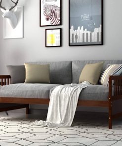 If you are looking for a bed or sofa to sleep or have rest in your leisure time, this Twin size 2-in-1 Wood Daybed Frame Sofa Bed in Brown Cherry Finish with three rails is a great choice. It is a good choice for you. Most of the frame is made of premium pine wood which ensures sturdiness and durability. And the accessories that come with the daybed frame are sturdy and antirust so that the bed won’t make any noise and shake after you use it for many years. Besides, the height of clearance under the bed is about 12 inches which is helpful to put your storage boxes and suitcases for taking conveniently and your room will be clean and neat. The appearance of our bed is concise and modern which can suit any style of decoration.