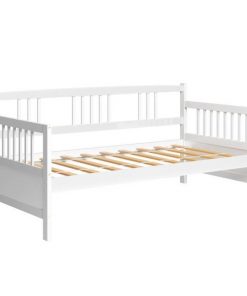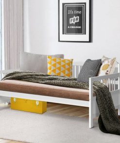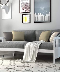 If you are looking for a bed or sofa to sleep or have rest in your leisure time, this Twin size 2-in-1 Wood Daybed Frame Sofa Bed in White Finish with three rails is a great choice. It is a good choice for you. Most of the frame is made of premium pine wood which ensures sturdiness and durability. And the accessories that come with the daybed frame are sturdy and antirust so that the bed won’t make any noise and shake after you use it for many years. Besides, the height of clearance under the bed is about 12 inches which is helpful to put your storage boxes and suitcases for taking conveniently and your room will be clean and neat. The appearance of our bed is concise and modern which can suit any style of decoration.