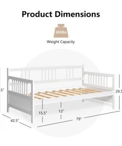 • Twin size 2-in-1 Wood Daybed Frame Sofa Bed in White Finish