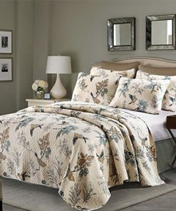 Twin size 2-Piece Cotton Quilt Bedspread Set with Floral Birds Pattern