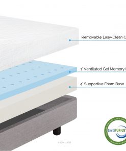 This Twin size 5-inch Thick Memory Foam Mattress – Firm Feel features 100% CertiPUR-US certified memory foam and a 25-year warranty backing its premium materials. With a 1” comfort layer of gel-infused cooling memory foam and 4″ supportive base foam, its firm feel quickly conforms to the body to support and relieve pressure. The gel mattress includes a soft, removable cover and is easy to set up. Additionally, it is conveniently shipped in a reusable duffel bag.